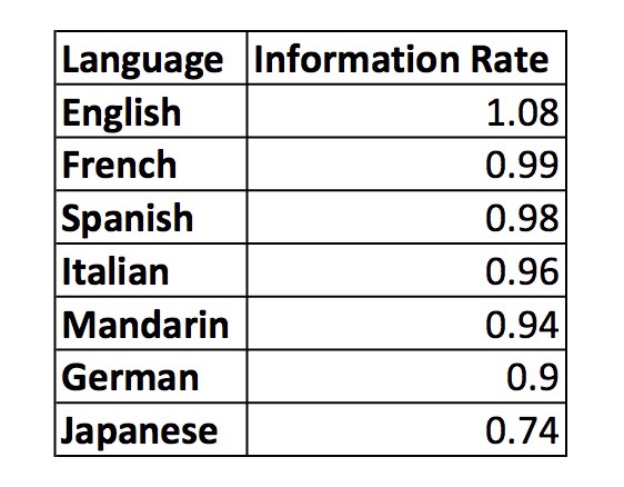 Interestingly, the languages that conveyed the least amount of information per syllable, like Spanish, Japanese, and French, tended to be spoken at a faster rate. This allowed these languages (apart from Japanese) to deliver a similar amount of information compared to more meaning-dense languages like Mandarin and English.